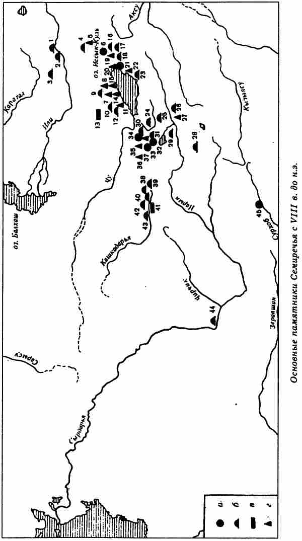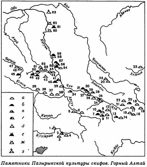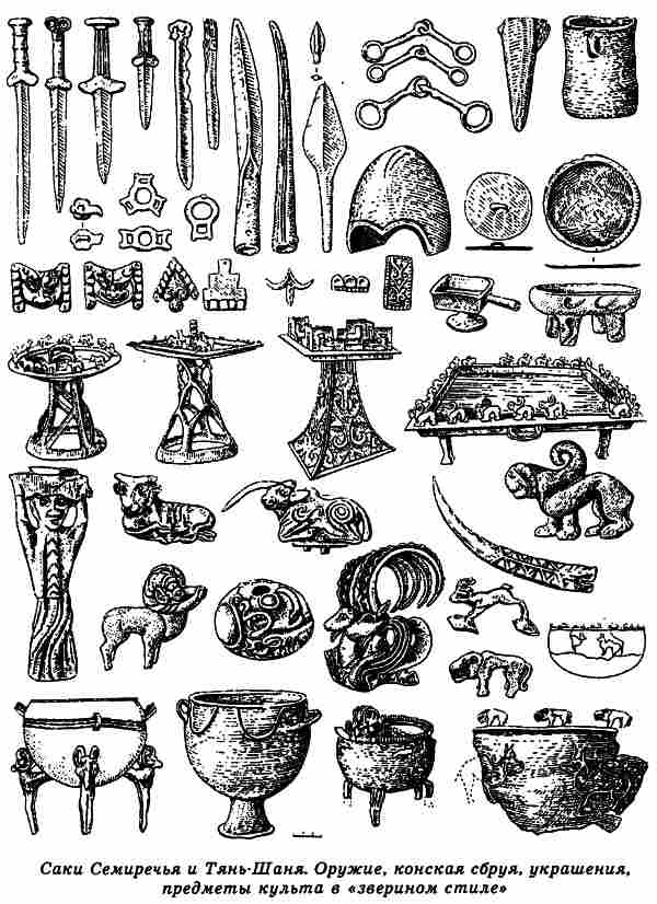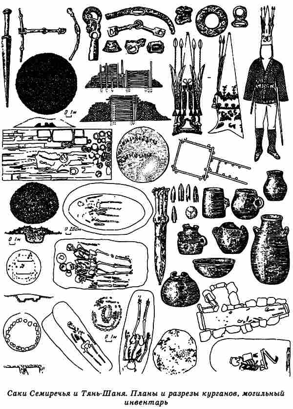 Многочисленные источники свидетельствуют, что скифское население занимало не только закаспийские и приаральские степи, но и более южную земледельческую зону предгорий Копетдага, Памира и Тяньшаня, а также и сами эти горы. Помпей Трог прямо утверждает, что парфяне и бактрийцы произошли от скифов116. Археологические исследования подтверждают это, позволяя включить в область непосредственного расселения скифов не только плодородные предгорья, но даже бесплодные ныне высокогорные пустыни Восточного Памира117. Высокие горные цепи служат естественными границами, «работающими» всегда, во все времена.