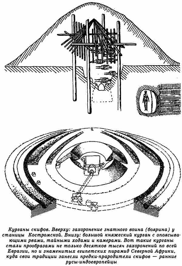 Данные археологии ясно свидетельствуют о прохождении скифами всей Сибири вплоть до Тихого и Ледовитого океанов. А что в лесах Русской равнины? То же самое. В «раннежелезных» культурах Средней и Верхней Волги, Городецкой и Ананьинской, обнаружено множество вещей, свидетельствующих о скифском влиянии, в частности, предметы скифского вооружения.
