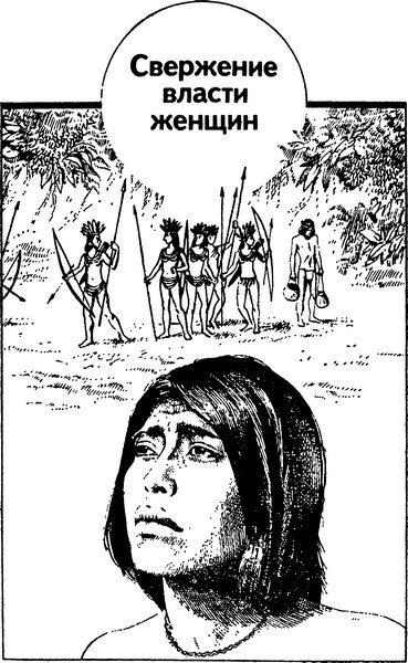 В первые десятилетия нашего века многие этнографы предполагали, что в подобных преданиях «отражается древняя матриархальная система». В отечественной этнографии гипотеза о матриархате продержалась довольно долго. Еще в вышедшем в 1959 году выпуске многотомного справочника «Народы мира», посвященном индейцам Южной Америки, к ней выражено сочувственное отношение. В настоящее время эта гипотеза отвергнута всеми специалистами по первобытной истории. Некоторые из них продолжают, правда, считать, что материнский род предшествовал отцовскому, хотя и не делают из этого выводов о «женоправии» в древности. Другие расценивают гипотезу об изначальности материнского рода как по меньшей мере недоказанную. Хотелось бы еще раз подчеркнуть, что мифы индейцев в принципе недопустимо использовать для ее обоснования. Тема «свержения власти женщин» родилась в них из внутренней логики мифологического мышления, из сложного переосмысления опытных фактов и наблюдений, а не как воспоминание о реальном прошлом.