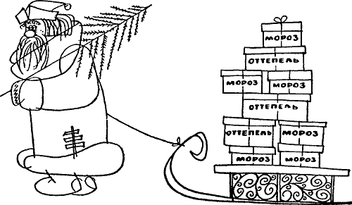 Однако мало того, что наш климат засушлив и суров, он к тому же отличается весьма неуравновешенным характером. Например, 31 января 1956 года одинаковая температура – минус 4 градуса – была зарегистрирована на Северном полюсе и в… Сочи. Перед тем же новым годом температура на полюсе поднялась до оттепели, в то время как в Москве стоял 30-градусный мороз. Или вот средняя месячная температура. В Москве в январе она равна –10,3 градуса (по многолетним данным). Однако в отдельные годы она повышается до минус 3 (средняя для Одессы), а иногда уменьшается до минус 22 (это уже как на Земле Франца-Иосифа). Еще лучше «гуляет» средняя температура января в Ленинграде: от плюс 0,6 (как в Феодосии), до минус 24,4 (а это как на северной оконечности Новой Земли).
