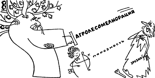 Нетрудно видеть, что, устраивая подобную лесостепную чересполосицу, чередуя посевы основных культурных растений с полосами леса и многолетних трав, мы действительно «подражаем природе». Эффект от этого подражания, безусловно, есть, но он нам довольно дорого стоит: ведь мы отнимаем у культурных растений часть принадлежащей им земли.