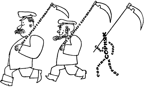 В-шестых, уничтожить сорняки. Но теперь уже не за счет погребения заживо, а за счет периодически устраиваемых им «варфоломеевских ночей». Вырезание сорняков чаще всего проводят в паровом поле, так как посевы зерновых не позволяют вести эту борьбу одновременно с выращиванием урожая, и при возделывании пропашных, когда в процессе вегетации культурных растений производится прополка.