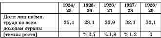 Относительный вес рабочего класса в национальном доходе капиталистических стран имеет неуклонную тенденцию к снижению. В советских условиях замечается иная закономерность: удельный вес пролетариата в национальном доходе проявляет тенденцию роста за счет уменьшения доли прочих классов. Необходимо внимательно подойти к цифрам, свидетельствующим о доле пролетариата в национальном доходе страны: ибо, если доля растет слишком медленно, стабильно или падает, то это означает, что диктатура пролетариата больна, что за счет пролетариата возрастает удельный вес других классов. Опубликованные Контрольные Цифры[504] не являются окончательными. Однако, отчетная часть их, вероятно, не подвергнется сколько-нибудь существенным изменениям. Нижеследующие данные взяты нами из К[онтрольных] Ц[ифр] Согласно К[онтрольным] Ц[ифрам] национальный доход в 1927/28 г. возрос по отношению к 1926/27 г. на 7,5%, национальный доход 1928/29 г. возрастет по отношению к истекшему на 10,4 и составит 27969 мил. руб. против 25336 мил. руб. в 1927/28 г. Какова же доля пролетариата в национальном доходе страны? Ответ на этот вопрос дает следующая табличка: