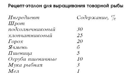 Для проведения работ или получения сравнительных данных эффективности использования комбикормов в разных почвенно-климатических зонах или в условиях различной интенсификации, уровня технологии выращивания рыбы и т. д. следует пользоваться рецептом-эталоном.