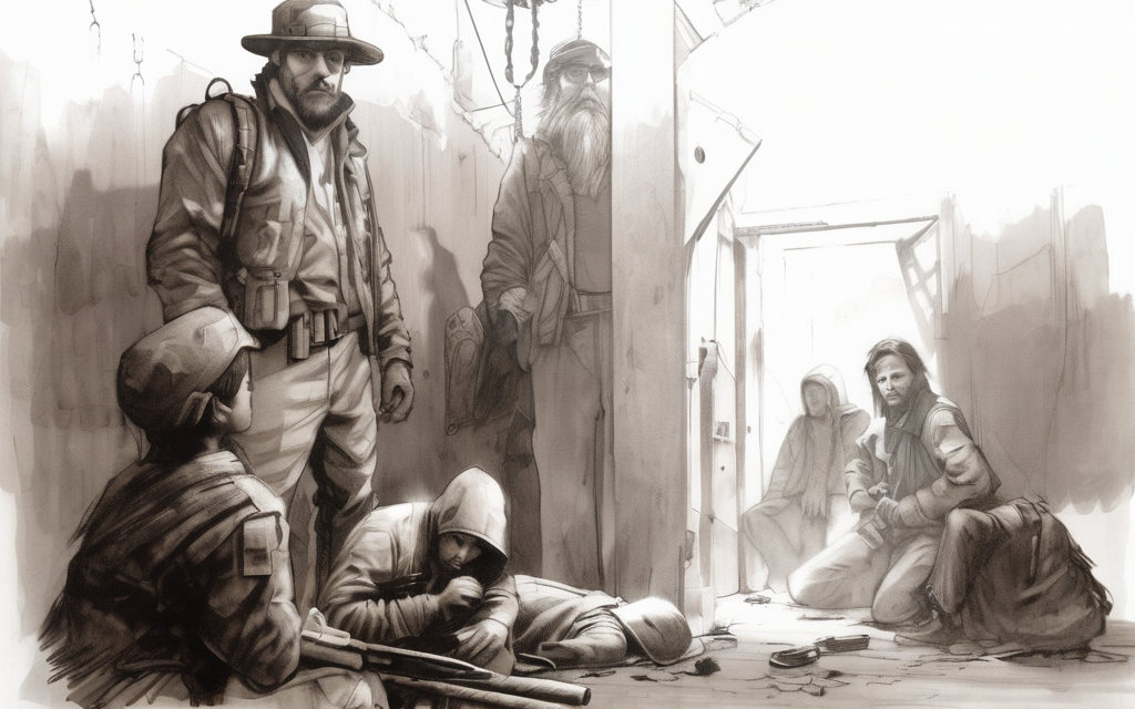 Трёхметровой ширины коридор с арочным сводом был частью явно древнего сооружения. Редкие лампочки, свисавшие с потолка, сла́бо освещали красную кирпичную кладку, местами обвалившуюся, но кое-как заделанную свежими цементными заплатами. Бо́льшая часть кирпича, особенно потолок, обросла зелёным мхом или покрылась старой паутиной, повисшей неоднородной массой тут и там. У жителей, населявших катакомбы, то ли не было времени, то ли желания привести в порядок помещения. Местами коридор загромождали ящики, мешки, сваленная сбоку солома, а один раз они прошли мимо кучи картофеля, огороженной грубо сколоченными досками. Видимо, места не хватало, так как в нишах и камерах, что ответвлялись от основного коридора влево и вправо через равные промежутки, обитали люди. И этого жизненного пространства было так мало, что в каморках четыре на четыре метра ютились по несколько семей, отделяясь друг от друга занавесками, так как даже самая простенькая стена из досок безжалостно отхватывала часть места. Люди выглядели бледными, худыми, измотанными. Оно и понятно: каждый день был, словно смертельный бой за выживание, за место под солнцем, совсем не греющим уже двадцать лет.