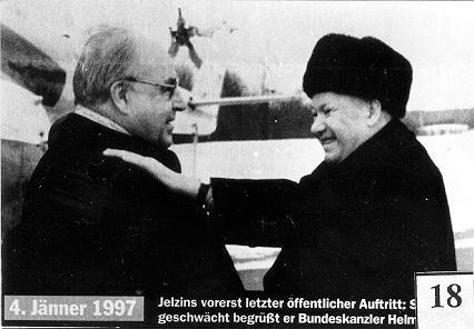 Ответ один: для этого нужна малость. Нужно, чтобы на фотографиях с Колем, Клинтоном, Шираком, Лукашенко, Масхадовым и другими был настоящий Ельцин. А этой малости как раз и нет! Их молчание стало доказательством того, что Ельцина нет с нами с 1996 года, что он умер или, как я уже писал, убит.