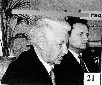 Подчеркиваю. ЦРУ веников не вяжет. Двойников Ельцина оно сделало хорошо. Дело усугубляется и тем, что истинный образ Ельцина мы уже забыли. Двойники вошли в образ, они хорошо копируют и мимику, и голос Ельцина, у них отрезаны пальцы на левой руке. (Правда, почему-то забыли нанести шрам на подбородок). Распознать их можно только в те мгновения, когда они забываются и становятся сами собой. Особенно коварна в этом деле фотография, которая фиксирует образ в сотые доли секунды. Вот смотрите.