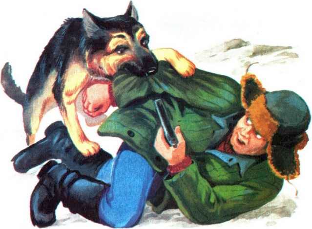 Кошкин бросил поводок, и Алый огромными прыжками стал нагонять нарушителя. Потом он прыгнул последний раз, пролетел по воздуху, ударил бегущего в спину и сшиб его с ног. Тот упал ничком и даже пошевелиться не мог, потому что Алый придавил его к земле.