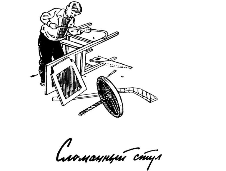 И тут ему в голову пришла заманчивая мысль: нет, он не просто отремонтирует стул, а переделает его. Был, например, стул с квадратным сиденьем, а теперь станет с круглым!