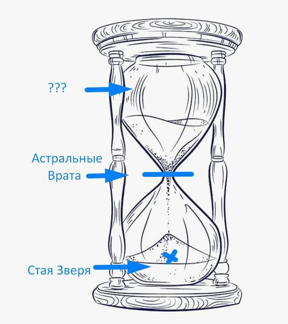Окружающая нас пещера постепенно становилась прозрачной. Стены истончались. Врата перед нами сияли с каждой секундой всё ярче и ярче. Мини-аномалия из Междумирья в виде песочных часов проступила в реальности мира Тейлур. Меня со всей стаей затянуло в нижнюю часть аномалии. Врата висели аккурат посередине песочных часов.