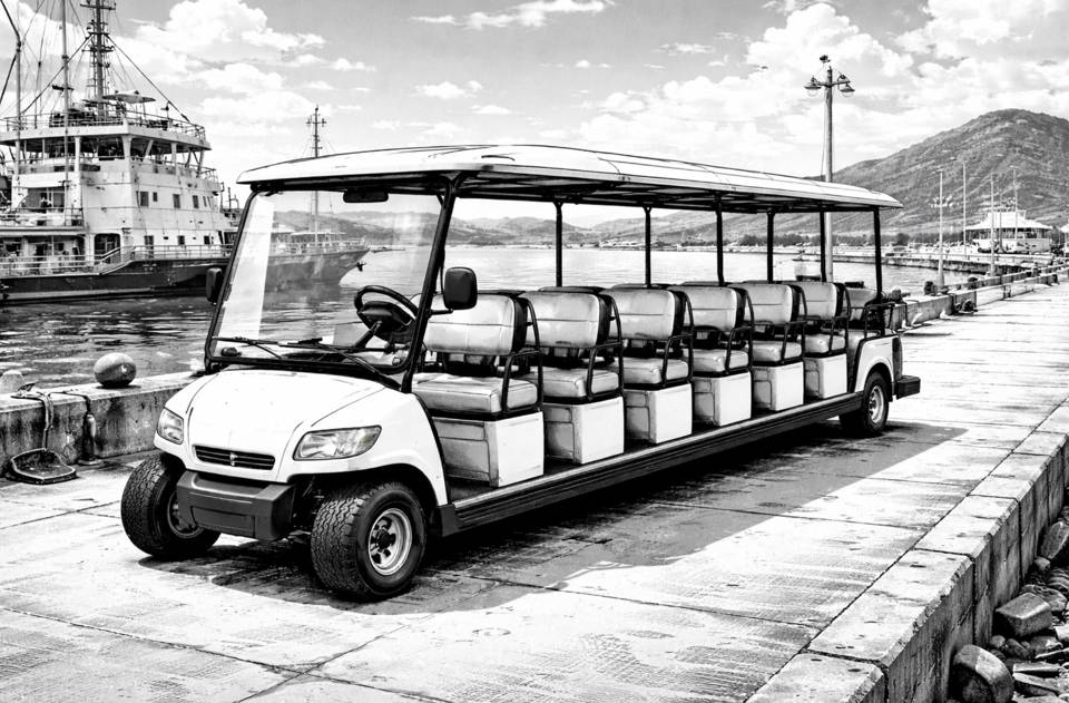 Крикнув что-то на французском, Поль подозвал прямо на пирс машину без дверей, но с навесной крышей. Этакий гольф-кар, рассчитанный на десяток пассажиров, которым лень ходить пешком.