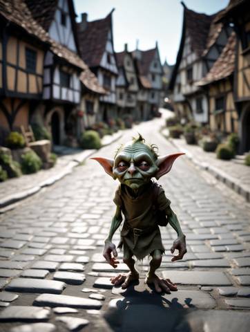 Судя по клочкам волос на лысой голове оно было уже довольно старое и своим внешним видом сильно выбивалось из окружающей действительности. Аккуратные каменные домики, вполне человеческие предметы утвари и босоногая зеленокожая тварь в рваной хламиде.