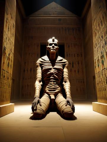– Это еще что за херня? – Протянул Дима, глядя на сидящую на коленях натуралистично выглядящую огромную статую мумии, высотой с трехэтажный дом.