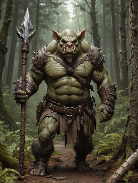 Густой лес, весь заросший папоротником, хорошо утоптанная тропинка, на которой уже приготовился к атаке огромный зеленокожий противник. Странное лицо, больше похожее на рыло свиньи с носом пятачком и торчащими из пасти клыками, массивное мускулистое тело и поблескивающая лысина. И главное, большое копье, которым он уже пытался меня подрезать, а теперь, выставив вперед перед собой, старался пырнуть.