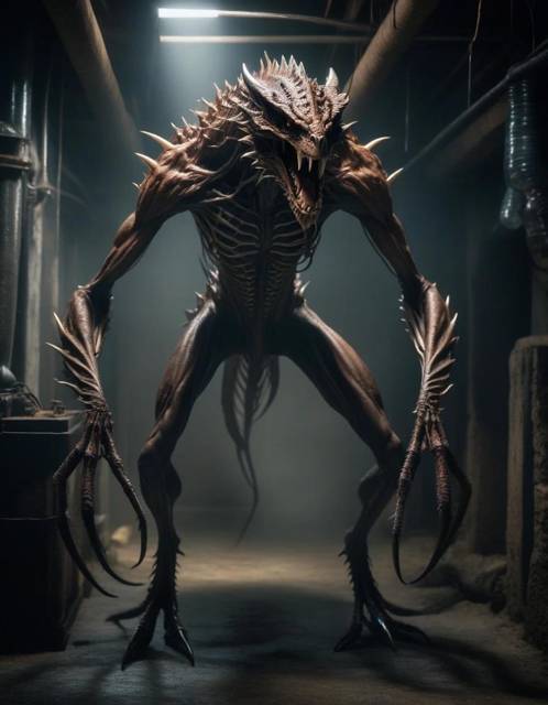 Какой-то хтонический ужас, вызывающий подспудный страх одним своим видом. Длинный и худой, с огромными когтями бритвенной остроты на жилистых лапах, воплощенный наяву кошмар, весь покрытый костяными шипами.