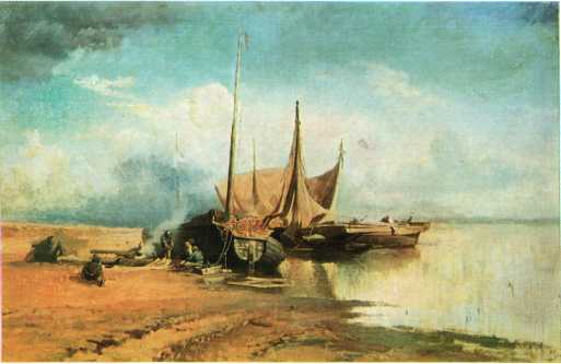 Вид на Волге. Барки. 1870 г.
