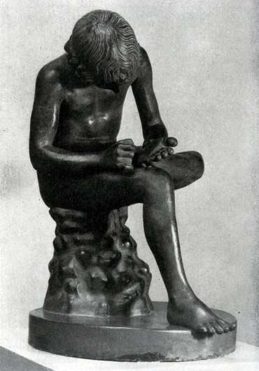 О развитии скульптуры ранней классики в направлении ко все большему реализму свидетельствует и статуя «Мальчика, вынимающего занозу», дошедшая до нас в мраморной римской копии с бронзового оригинала второй четверти 5 в. до н.э. Фигурка мальчика отличается естественностью угловатой позы, реалистической передачей форм тела подростка. Только волосы, словно не подчиняющиеся силе тяжести, даны несколько условно. Жизненная наблюдательность напоминает здесь полные реализма сцены на вазовых рисунках этого времени. Однако это не просто жанровая скульптура. Статуя рассказывает о подростке, прославившемся своей доблестью во время состязания в беге. Острый шип вонзился ему в ногу, но мальчик продолжал бег и первым достиг цели.