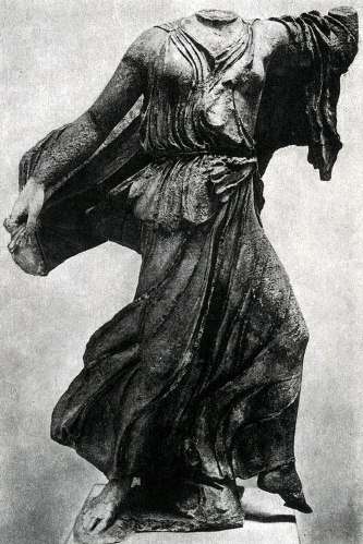 Близка к кругу творческих задач искусства Мирона и замечательная статуя крылатой Ники-Победы, работы ионийского скульптора Пэония из Менде (3-я четверть 5 в. до н.э.). Созданная в честь одержанной мессинянами победы, «на украшала архитектурный ансамбль Олимпии.