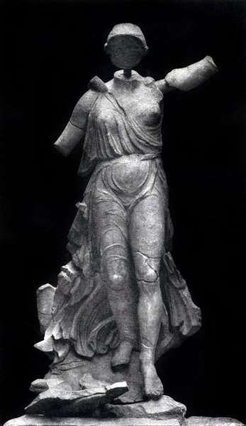 159. Пэоний. Ника, спускающаяся с небес. Из Олимпии. Мрамор. Третья четверть 5 в. до н. э. Олимпия. Музей.