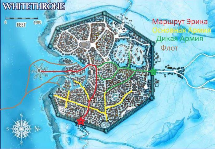 – Я тебя понял, но всё же попробуй, – понимающе кивнув ему, я вновь перевёл взгляд на карту, – даже как проводники по городу, они помогут сохранить множество жизней. Теперь к следующему шагу. Как только мы прорвёмся внутрь, нашей главной целью будет прорваться к королевскому дворцу. Устраним тех, кто вызывает демонов и прочих тварей, и занять город станет намного легче. Теперь о штурмовых колоннах. Как, думаю все уже поняли, главный удар будет за мной, с пятью сотнями гвардейцев и штурмовыми големами мы отправимся на прорыв к дворцу, – передвинув одну из фигурок вдоль главной улицы города. Георгий, ты идёшь с двумя сотнями гвардии и дружиной ульфенов за мной и начинаешь планомерную зачистку города. Эйр, на тебе десант в городской порт, постарайся захватить его как можно быстрее и соединиться с братом, и чуть не забыл, – сняв с пояса тубус со свитком, я передал его ей, – здесь заклинание Цунами, немного переработанное мной, используешь его, перед тем, как начать высадку.