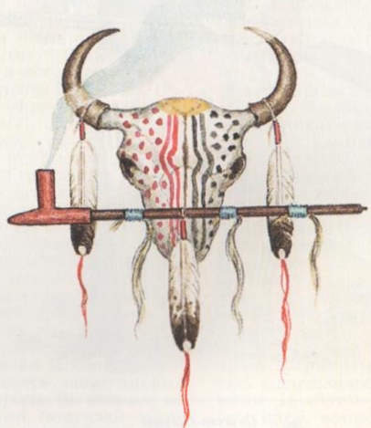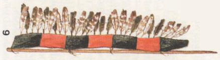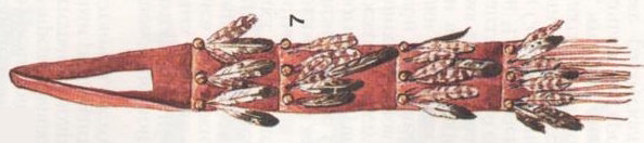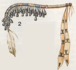 – две трубки, шесть копий: два изогнутых, четыре прямых, барабан, сабля, две кожаные рубахи, два кнута, два головных украшения из двух орлиных перьев.
