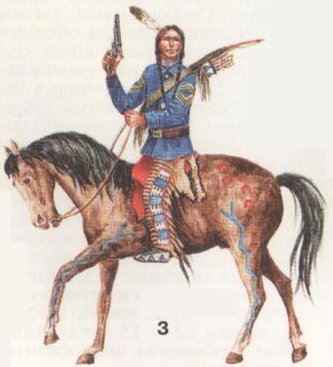 Весьма непростой вопрос: считать ли индейских разведчиков предателями или нет? Кроме того, что в скауты обычно шли воины малочисленных племен, теснимых такими могучими племенами, как Сиу, Чейенны или Команчи, для этого существовал еще ряд причин. Во-первых, скауты, и не поступив на службу к белым, все равно бы сражались против своих исконных врагов, оставаясь защитниками своего народа. Во-вторых, на службе они получали шанс отомстить враждебному племени, имея на своей стороне сильного союзника в лице армии. И в-третьих, одновременная война против соседних многочисленных и агрессивных племен и регулярной армии неизбежно привела бы к полному уничтожению их народа. Не случайно большую часть скаутов составляли Кроу и Пауни, племена, со всех сторон окруженные и теснимые врагами. Кстати, воины этих двух племен, а также степные Делавары считались лучшими скаутами, самыми смелыми, профессиональными и надежными.