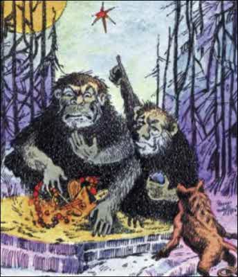 Типичный туземец выглядел как шар светло-серого меха, с выступающими из него короткими ногами, чуть более длинными руками и покатой головой, растущей, казалось, прямо из широких плеч. Если проводить сравнение с земными животными, то наиболее близким аналогом была бы горилла, хотя она, вероятно, протестовала бы против такого заключения. Аборигенов сопровождало сильно суетящееся существо размером с кошку, а по виду – помесь ящерицы с лошадью. Бубнов предположил, что это какое-то местное домашнее животное, и был, между нами, совершенно прав.