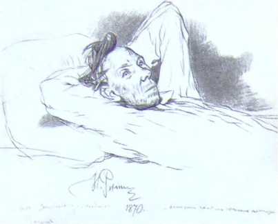 «Записки сумасшедшего». Поприщин. Рисунок И. Репина. 1870.