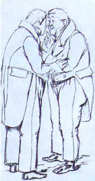 «Мёртвые души». Чичиков и Кувшинное рыло. Чёрная акварель А. Лаптева. 1951.