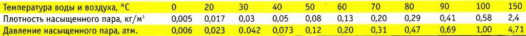 Снова вспомним школьный курс физики и проведем простейший эксперимент. Нальем в кастрюлю воду и, закрыв крышкой, поставим в термостат-духовку, нагретую до 40 °C. По мере нагрева воды до 40 °C замеряем абсолютную влажность воздуха под крышкой, которая, повышаясь, наконец достигает некоторого предельного максимального значения 0,05 кг/м3, называемого плотностью насыщенного пара при 40 °C. Затем поднимаем температуру термостата до 50 °C, абсолютная влажность воздуха под крышкой также повышается и достигает уже другого максимального значения 0,08 кг/м3, называемого плотностью насыщенного пара при 50 °C. В результате продолжения эксперимента получаем следующую таблицу (таблица 2).