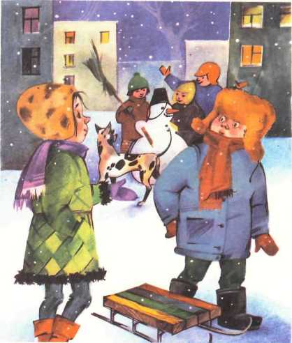 Только одного мальчишку заметила Катя по пути домой. Он неподвижно стоял возле своих саночек и смотрел издали на Катю. Вдруг мальчишка замахал руками, схватился за голову, словно его ударили, и побежал прочь, оставив на снегу саночки.