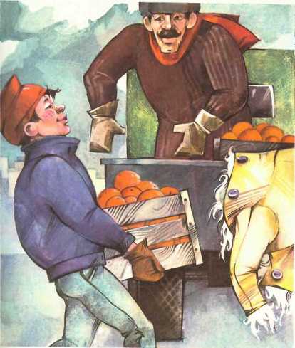 – Скорее! Скорее! – твердили мандарины. – Мы с юга!.. Мы очень озябли… Скорее бы в магазин!..