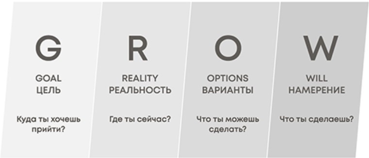 Уитмор стал автором одной из универсальных моделей в коучинге – GROW. Он выделил основные принципы коучинга и разработал алгоритм из четырех этапов: