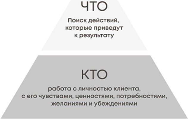 Уровень «Кто» – это работа с личностью клиента, его чувствами, ценностями, потребностями, желаниями и убеждениями. На этом уровне клиент определяет, кто он сейчас и кем ему нужно стать, чтобы желаемый результат был возможен. Это работа на уровне идентичности человека.