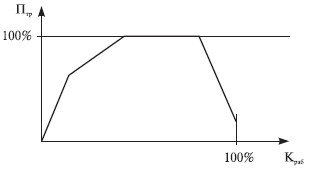Рис. 3.2. Пример графической зависимости: Птр – производительность труда; Краб – количество работников с высшим образованием