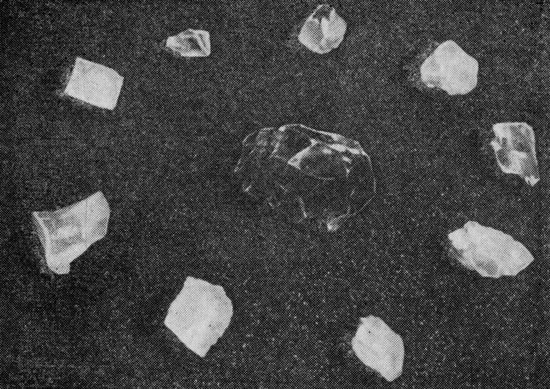Мне не оставалось ничего другого, как встать и присоединиться к нему. На столе перед нами белели лунные камни, аккуратно разложенные в ряды по размерам. Я взял крупный кристалл и стал легонько поворачивать его плоскость спайности в призрачных лучах лунного света. И вдруг камень вспыхнул тем ярким серебристым светом, каким загорается наше северное небо во время полярных сияний. Мы замерли и, затаив дыхание, молча смотрели на это диво, рожденное в камне.