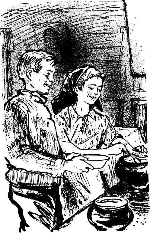 Яриська молча утопила ложку в горшке и, зачерпнув, подала Харитону: