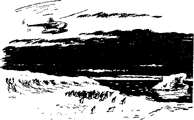Мы подлетели к самому берегу и стали пугать пингвинов, стараясь согнать их в воду, но эти потешные птицы только переваливались с ноги на ногу и вовсе не боялись нас.