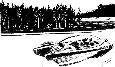 Я внимательно наблюдал, как Кинолу управляет машиной. Перед ним не было ни баранки, ни рычага переключения скоростей, только небольшой пульт с разноцветными рычажками и кнопками. Двигатель в автомобиле был атомный. Трансформаторная оболочка надежно защищала нас от смертельных лучей.