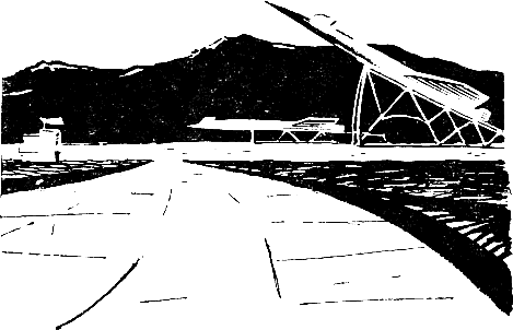 Немного не доехав до города, мы свернули в сторону и вскоре подъехали к аэродрому. Перед нами было высокое здание аэропорта с тонким золотым шпилем на башне.