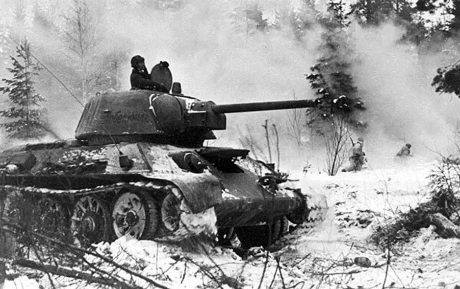 «Тридцатьчетверка» скатывается с насыпи, проламывает заросли, приостанавливается, крутя башней – ствол орудия раздвигает сломанные голые ветви.