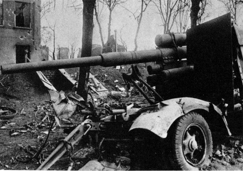 Окраина Кёнигсберга. Брошенное 88-мм зенитное орудие FlaK 36/37.