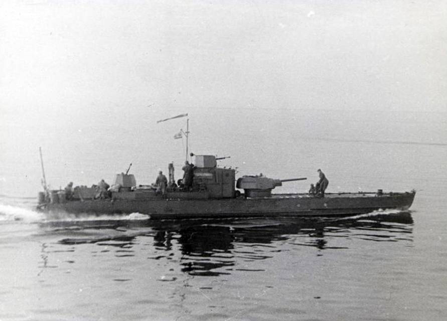Бронекатер прошел мимо потопленной БДБ – над водой возвышалась мачта и хобот 88-миллиметрового орудия.