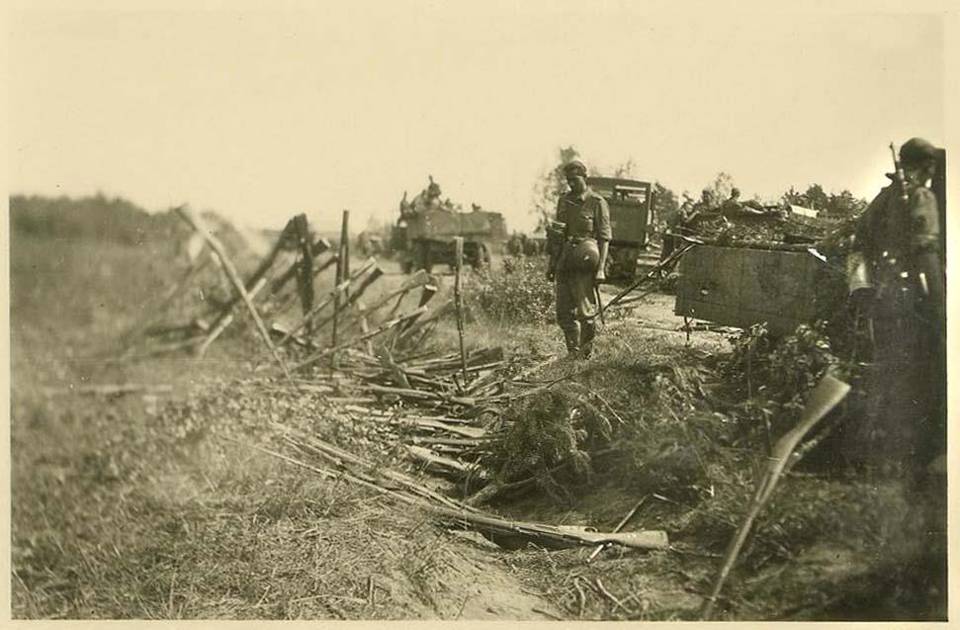 Тем временем поле опустело: крестьяне ушли, они похоронили всех красноармейцев. Фашисты заканчивали погрузку трофеев в грузовики. Александру было очень интересно, не останется ли чего на поле. Так интересно, что он велел всем оставаться на месте и быть готовыми прикрыть его огнем, а сам пошел на ту сторону. Естественно лесом, и уж конечно с винтовкой. Оказалось, что в три грузовика просто физически не могло поместиться всё. В две машины они сгрузили своих мертвецов, в другую набилось дофига солдат. И всё, все те кучи оружия, которые лежали на обочине, остались тут. Не бесхозные, а под охраной.