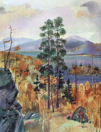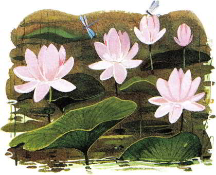 В августе на таёжных озёрах расцветает чудесный цветок – лотос. Розовый, лучистый, крупный, поднимается он над водой. Лепестки в разные стороны тянутся, словно лучи. Светится он на солнце, и кажется, что он тёплый – будто живая кровь в каждом лепестке струится…