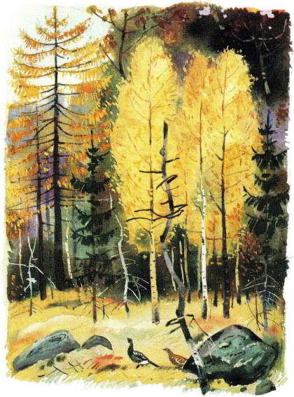 И берёзы в тайге растут. Разные берёзы – с белой корой, с чёрной и с жёлтой. Какая кора у берёзы – так она и называется.
