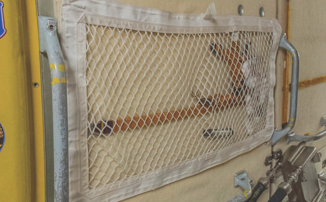 Есть некая вертикальная поверхность. К этой поверхности прикручены приборы и датчики. И от этого оборудования во все стороны тянутся провода, будто плющ. Разумеется, провода разного диаметра и длины. А потому они хаотично опутывают друг друга. Чтобы все эти пряди не мешались, космонавты сматывают их в бухты и соединяют в гигантские пучки. И среди этого леса проводов да кабелей, как из травы, выглядывают разные предметы, такие как: шариковые ручки, канцелярские зажимы для бумажных документов (в XXI веке), сами документы, карандаши, мешки с салфетками, линейки, иконы, кресты, фотографии, гаечные и разводные ключи, наборы болтов, шурупов, молотки, скотч, изолента (куда без неё), надувной глобус, микрофоны, фонарики, свёрла, дрели, принтеры и многое другое.