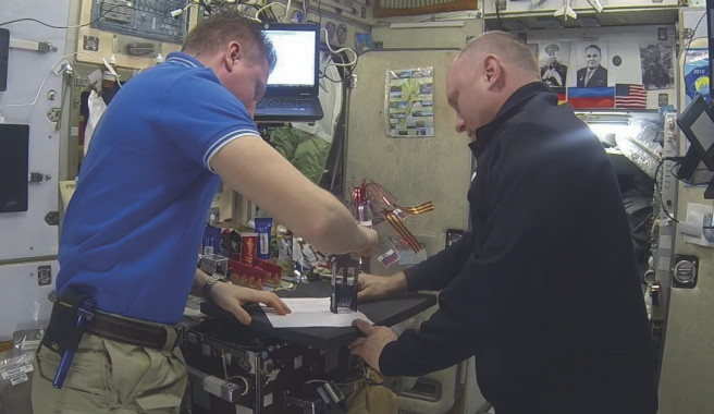 Старый и новый командиры, после инспектирования российского сегмента и сверки с описью всех важных элементов, на распечатанном с помощью принтера бланке заполняют акт: