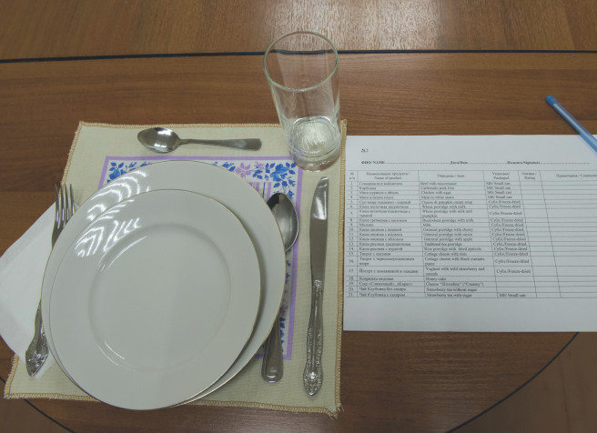 «Сам процесс выглядит следующим образом: в медицинском управлении ЦПК сервируют стол, помимо столовых приборов, выдают табличку с перечнем блюд, которые предстоит оценить по девятибалльной шкале. Сублимированные продукты или, к примеру, каши разводят водой по инструкции. В процессе подачи к столу озвучивают состав блюда».