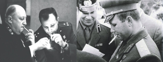 Гагарин часто появлялся на публике с сигаретой или папиросой во рту. Сохранилось несколько фотографий, на которых Юрий Гагарин курит.
